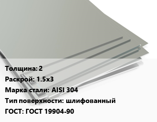 Лист нержавеющий 2 1.5х3 Сталь: AISI 304 Тип:шлифованный ГОСТ 19904-90