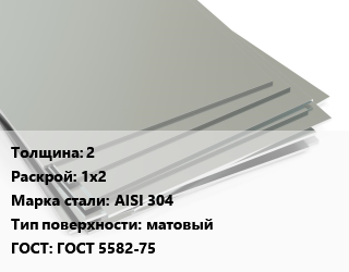 Лист нержавеющий 2 1х2 Сталь: AISI 304 Тип:матовый ГОСТ 5582-75