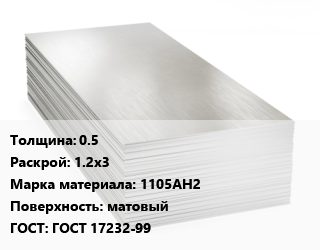 Алюминиевый лист 0.5 1.2х3 Марка: 1105АН2 матовый ГОСТ: ГОСТ 17232-99
