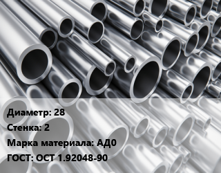 Труба алюминиевая 28 s=2 Марка: АД0 ГОСТ: ОСТ 1.92048-90